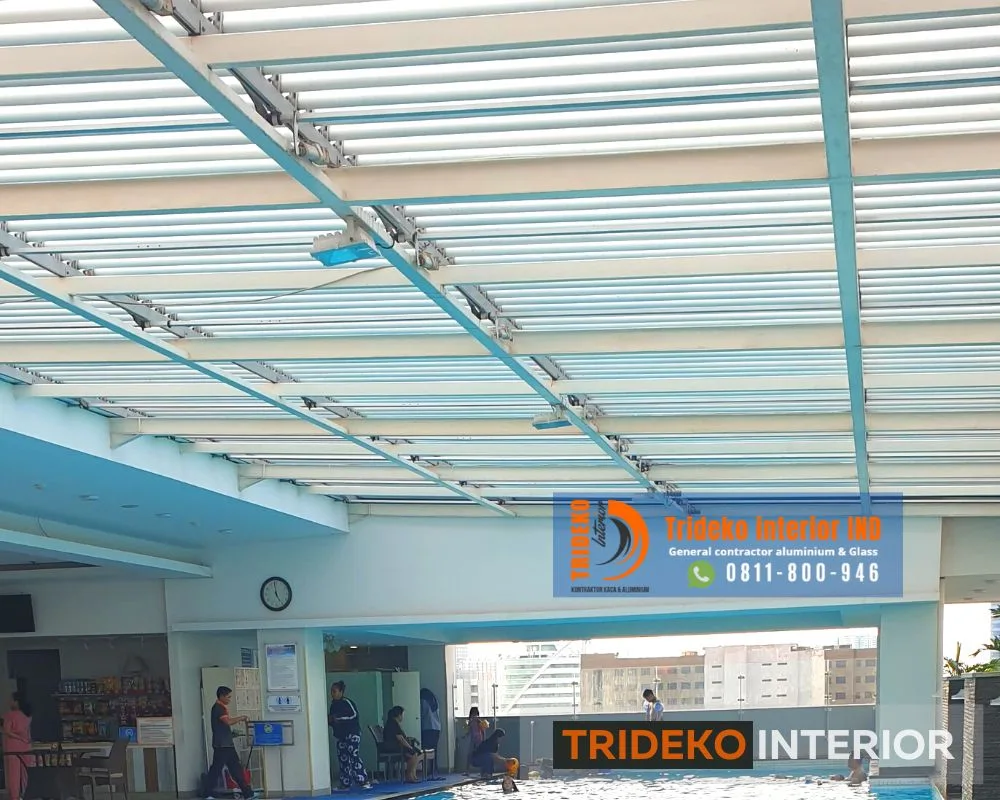- Multifungsi: Tidak hanya melindungi para tamu dari hujan atau panas matahari, tetapi juga memungkinkan kolam renang untuk digunakan dalam berbagai kondisi cuaca, menjadikannya fasilitas yang dapat dinikmati sepanjang tahun.